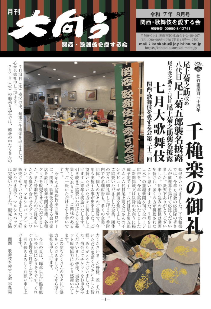 大向う8月号(2025年) 会員専用 2025.10.26 2025.08.05 このコンテンツはサイトメンバーに制限されています。既存のユーザーの方はログインしてください。 This content is restricted to site members. If you are an existing user, please log in.既存ユーザのログインユーザー名またはメールアドレスパスワード ログイン状態を保存する パスワードを忘れた場合 パスワードリセット