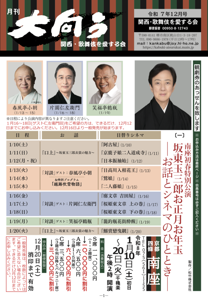 大向う12月号(2025) 会員専用 2026.01.01 2025.12.01 このコンテンツはサイトメンバーに制限されています。既存のユーザーの方はログインしてください。 This content is restricted to site members. If you are an existing user, please log in.既存ユーザのログインユーザー名またはメールアドレスパスワード ログイン状態を保存する パスワードを忘れた場合 パスワードリセット