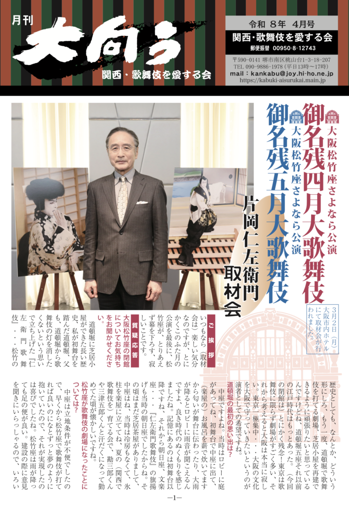 大向う4月号(2026) 会員専用 2026.04.04 このコンテンツはサイトメンバーに制限されています。既存のユーザーの方はログインしてください。 This content is restricted to site members. If you are an existing user, please log in.既存ユーザのログインユーザー名またはメールアドレスパスワード ログイン状態を保存する パスワードを忘れた場合 パスワードリセット